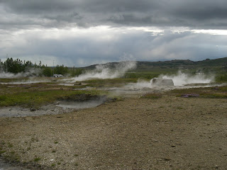 E chegamos a mais um local propício para muitas fotos. O Geysir, o pai (pelo menos em termos de nome) de todos os outros geysers. Já apenas esguicha poucas vezes por dia, mas continua a borbulhar imenso. E o cheiro a enxofre continua fortíssimo. Ao lado temos Strokkur, que com intervalos de poucos minutos e enormes magotes de gente à sua volta suspensa no tempo, irrompe com força para enorme prazer de todas as máquinas fotográficas nas redondezas. Subimos a uma pequena montanha para vermos do alto todos aqueles pequenos e grandes geysers. Cansados, gritamos a plenos pulmões do cimo. Sinto-me vivo.
